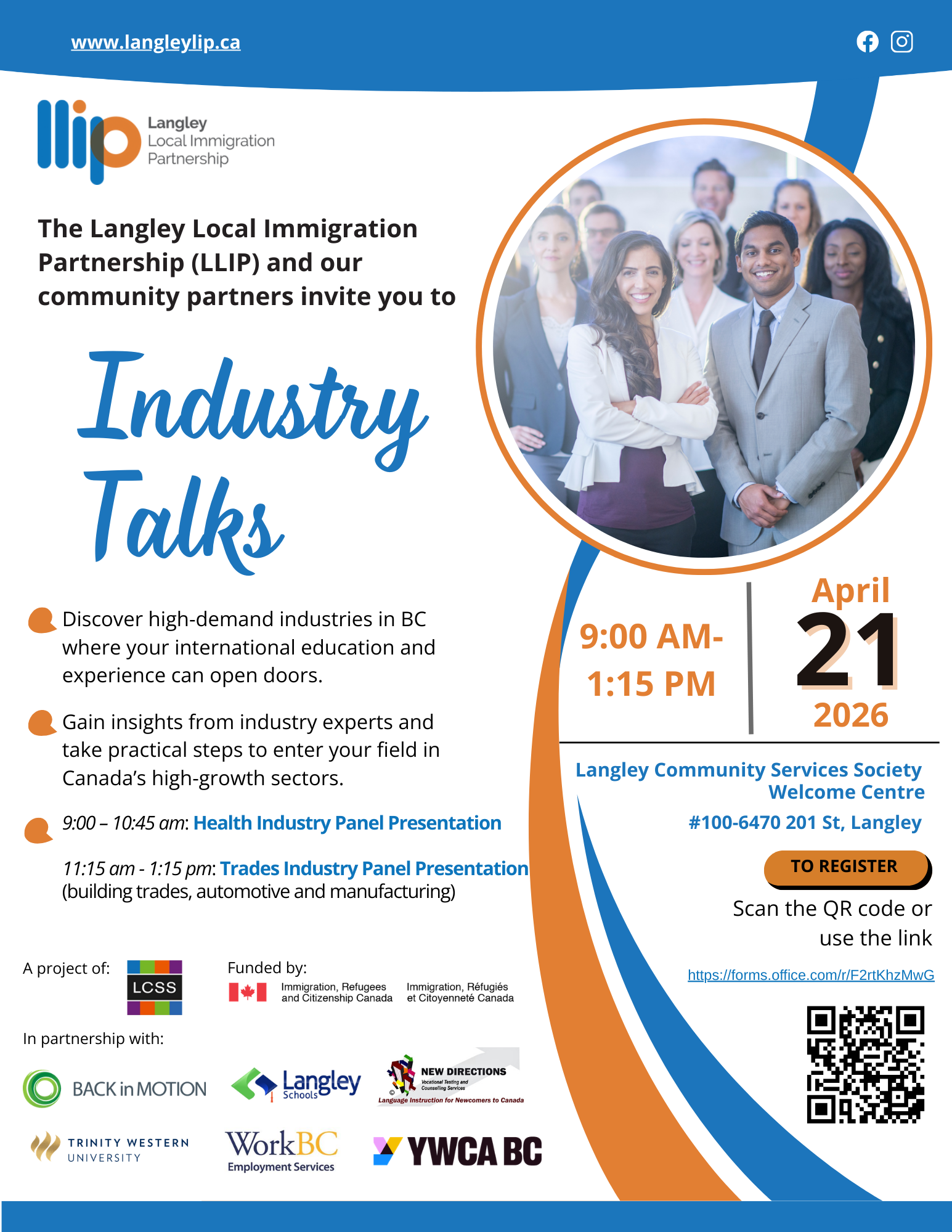 This industry talks session is ideally suitable for internationally trained professionals (ITPs) and other new immigrants who are trying to understand the different booming industries in BC/Langley. Please note this is not a hiring fair but a networking and information session followed by Q&A.